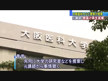 大阪医科大、無届けで再生医療を実施 府警が捜索(19_10_25)