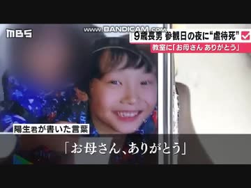 大阪 堺 9歳男児 参観日の夜に虐待死 教室に「お母さん、ありがとう」