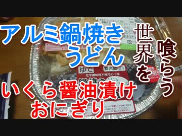 疾風の伊造の世界を喰らう第11夜。セイコーマートのアルミ鍋焼きうどん、ローソンいくら醤油漬けおにぎりです。