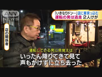 大阪・西成区 運転の男は逃走 飲食店に車突っ込む(19_12_17)
