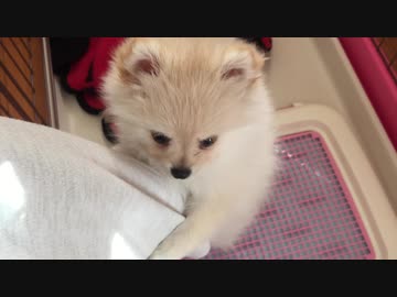 腕にまとわりつくポメラニアンモモ(子犬)