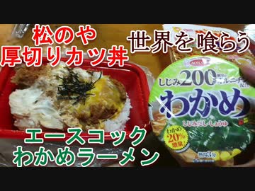疾風の伊造の世界を喰らう第15夜。松のや、厚切りロースカツ丼と、エースコックわかめラーメンです。