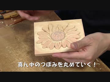 森の木彫り教室8「初心者、伝統的な菊のデザインを彫る」Wood carving beginner Japanese traditional chrysanthemum design 神社 寺院