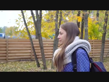 Beautiful Young Woman Wears Knitted Scarf And Walking In Autumn Park. 左近鈴乃