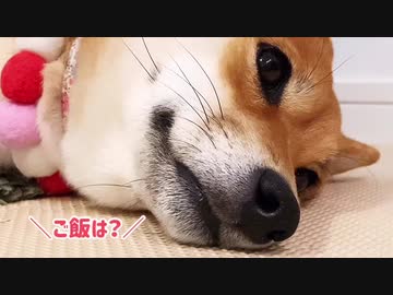 今にも寝そうな柴犬に「お散歩」「ご飯」と呼び掛けてみた