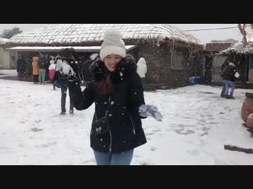 Beautiful girl Hai Nhu playing snow