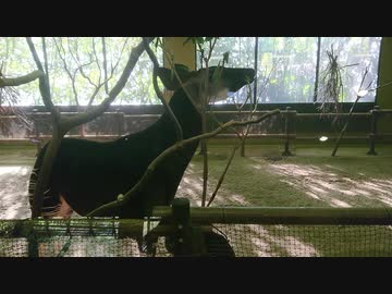 職員さんにツンだけど葉は食べたいオカピ@ズーラシア動物園。