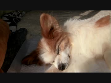肉球を見せながら眠るワンコ(パピヨン)2