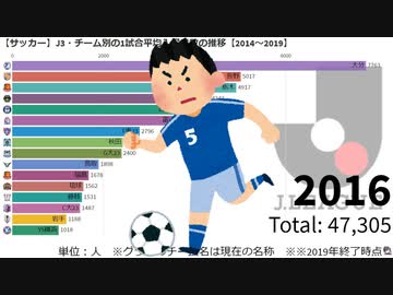 【サッカー】J3・チーム別の1試合平均入場者数の推移【2014~2019】