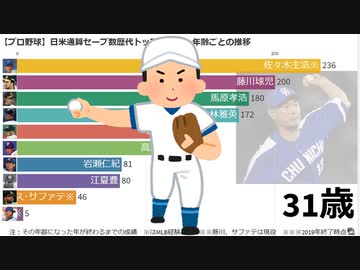 【プロ野球】日米通算セーブ数歴代トップ10投手・年齢ごとの推移
