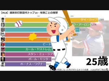 【MLB】通算安打数歴代トップ10・年齢ごとの推移【メジャーリーグ】