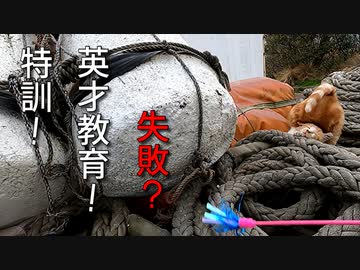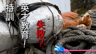 猫じゃらしで特訓!野良猫がジャンプしたりコケたりする動画です