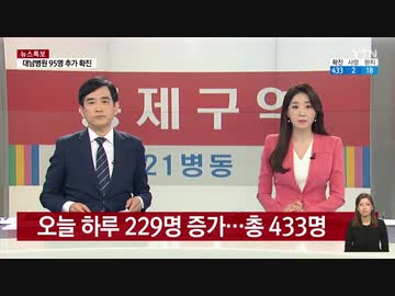 韓国のウイルス感染者今日一日で229人確定...感染総数が433人に倍増