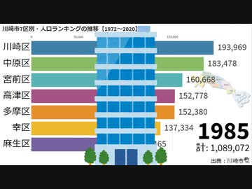 川崎市7区別・人口ランキングの推移【1972~2020】