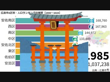 広島市8区別・人口ランキングの推移【1980~2020】