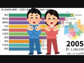 さいたま市10区別・人口ランキングの推移【2003~2020】