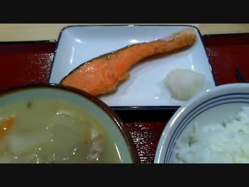 早朝食堂・豚汁と鮭 2020-03-10