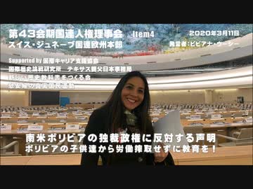 【テキサス親父日本事務局】 第43会期国連人権理事会 Item4 「ボリビアの恐怖政治と子供の就業・教育の機会」 発言者:ビビアナ・ウーシー