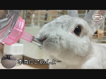 【うさぎ動画】うちのうさぎが慌てて水を飲んでいます【反省】