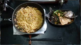 イスズミの煮付けと和風パスタ
