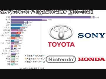 世界ブランドランキング・日本企業TOP20推移【2009~2020】