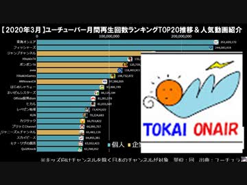 【2020年3月】日本ユーチューバー月間視聴回数ランキングTOP20推移&人気動画紹介【日本YouTube】