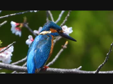 桜とカワセミ、桜吹雪