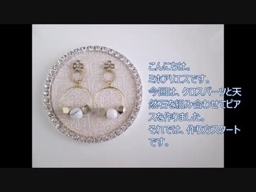 クロスと天然石のピアス 作り方 天然石 フープ 十字 キラキラ