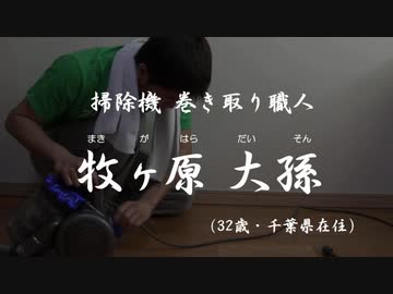 掃除機のコードを巻き取る職人