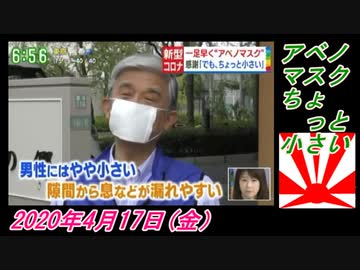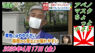 17-4すまたん、アベノマスクちょっと小さい。菜々子の独り言 2020年4月17日(金)