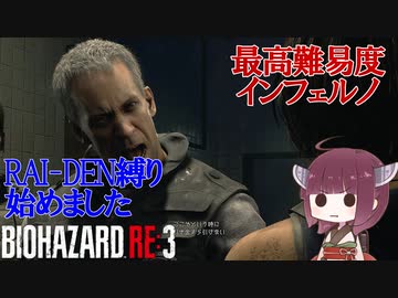 【VOICEROID実況 東北きりたん】【ゆっくり実況】バイオハザード RE3(難易度:インフェルノ) part4 RAI-DEN+α縛り