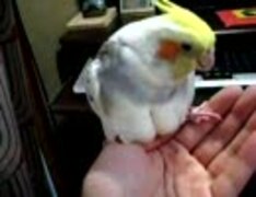 手のひらでスリスリするオカメインコ