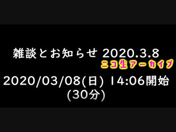 【音のみコメ無し】ニコ生「雑談とお知らせ」2020/3/8放送分【諒子】