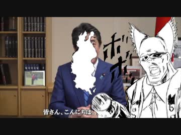 ビデオメッセージの冒頭で消毒されてしまう総理大臣