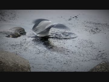 ある日の桜島(その210)<お食事タイムのアオサギさんと桜島>