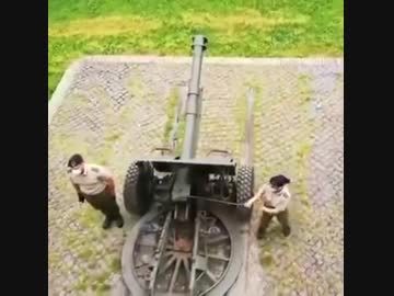 大砲を撃とうとするけどヒモ(りゅう縄)が引けない女性兵士