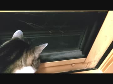 ねこが網戸からすごい外を見てたから何かとおもって見たら似たねこがいた