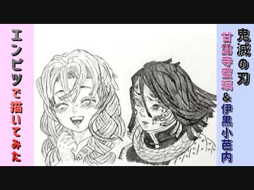 「鬼滅の刃 甘露寺蜜璃&伊黒小芭内」還暦男がHB鉛筆1本で描いてみた。