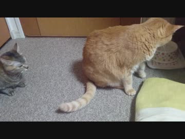 拾いねこ@生後2899/2866日目 思い切りに欠けるアコさんを眺める月さん。