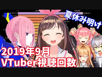 【2019年9月】日本バーチャルユーチューバー視聴回数ランキングTOP20推移&人気動画紹介【VTuber】