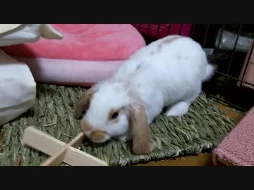 齧り木を投げるうさぎさん