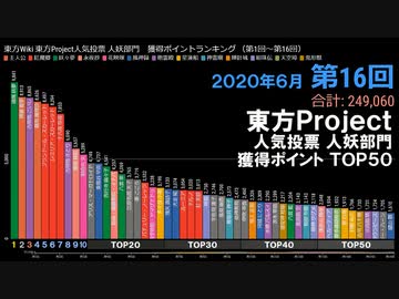 【動くグラフ】第1回~第16回 東方Project人気投票 歴代TOP50