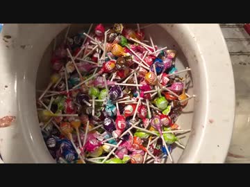 スキットルズとペロペロキャンディーをトイレに流してみた