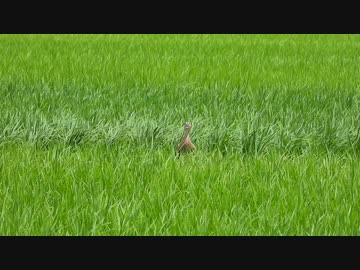 田んぼの中のカルガモと見つめ合うだけの動画