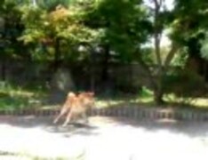 柴犬に打ち水