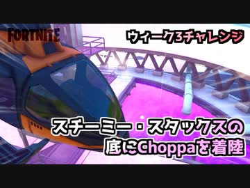 【フォートナイト】ウィーク3チャレンジ”スチーミー・スタックスの底にChoppaを着陸”
