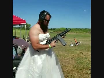 ウェディングドレス着たおっさんがライフルぶっ放す動画