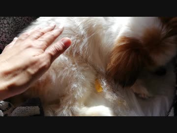 体を乾かしているワンコ(パピヨン)