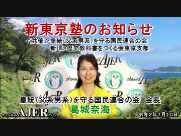 「皇統(父系男系)を守る国民連合の会『新東京塾のお知らせ』」葛城奈海 AJER2020.7.10(x)