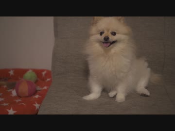 変な座り方になってしまったポメラニアンモモ
